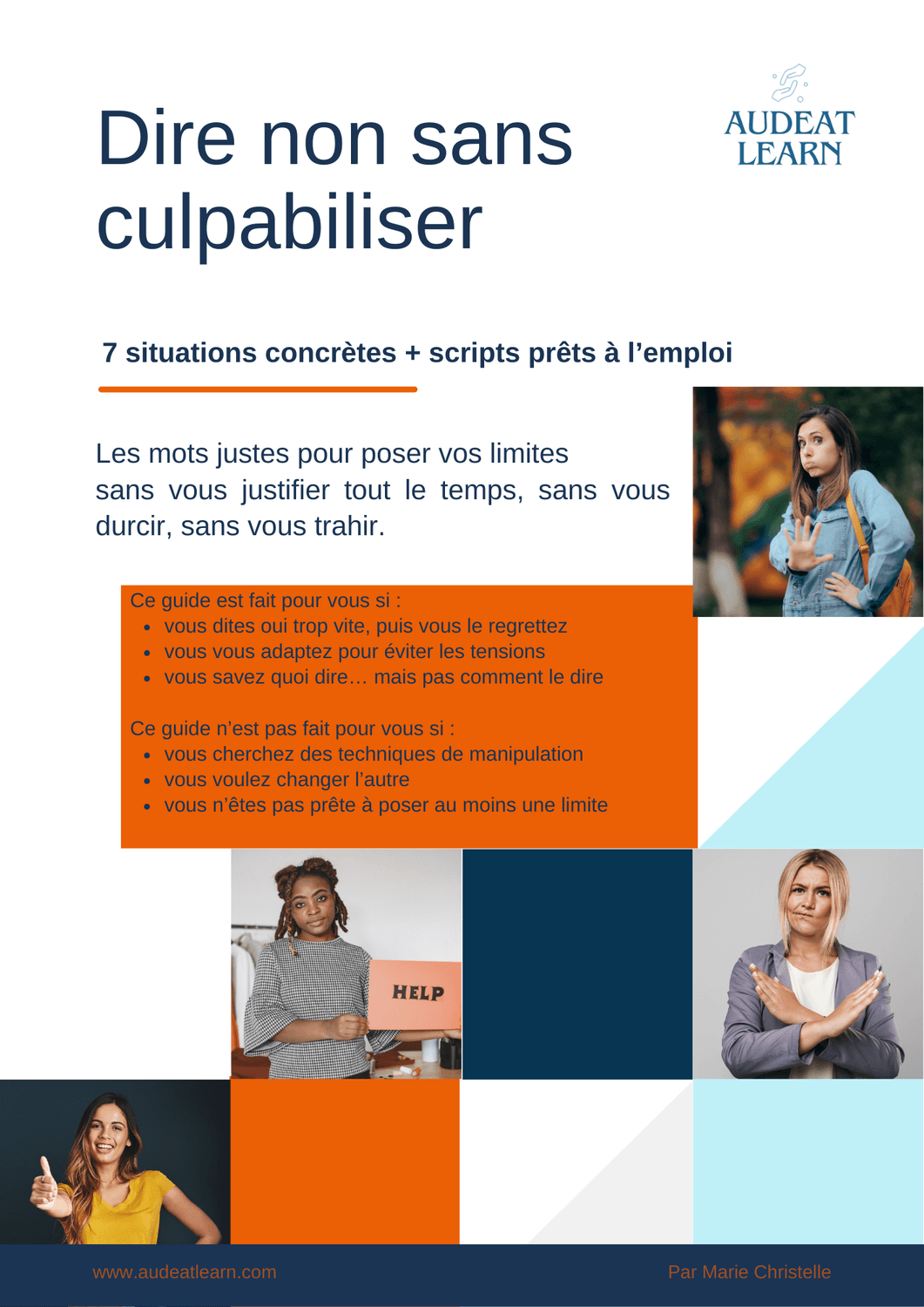 7 situations concrètes + des scripts prêts à l’emploi pour trouver les mots justes et poser vos limites sans vous justifier, sans vous durcir, sans vous trahir.